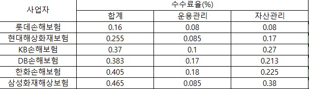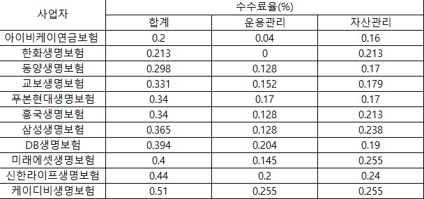 생명보험사 중에서는 아이비케이연금보험이 수수료율이 가장 낮은 것으로 보입니다.