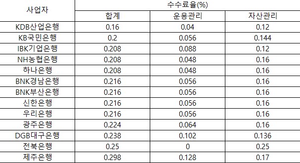 현재는 KDB산업은행이 수수료가 가장 낮은것으로 보입니다.